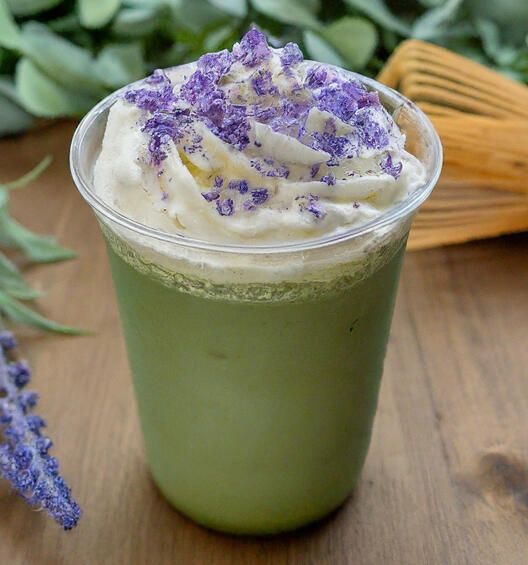 Iced matcha tea sweetened with lavender cream topped with whipped cream and vanilla sprinkles.Spring Blossom | (7,000 gil)